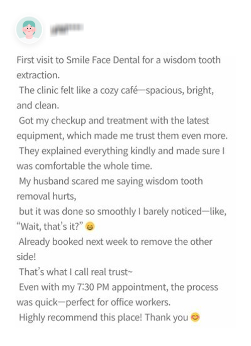 that’s the standard at SMILE FACE DENTAL CLINIC.